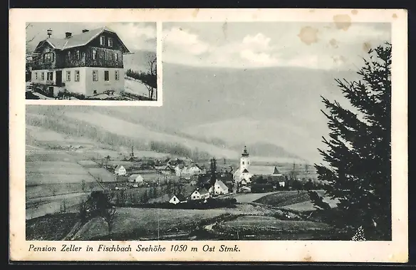AK Fischbach, Ortsansicht mit Pension Zeller