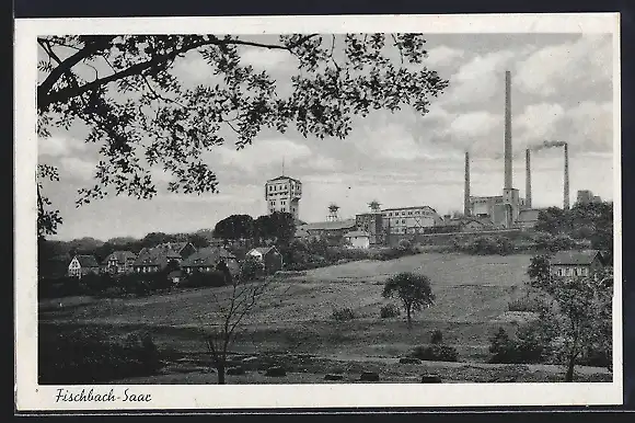 AK Fischbach / Saar, Ortsansicht mit Fabrikgebäude