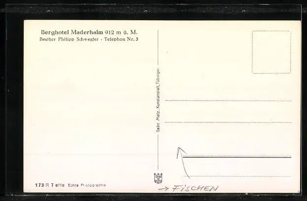 Personenbezogene Daten auf der Rückseite der Karte wurden durch blauen Textmarker unkenntlich gemacht. Die blauen Stellen sind auf die Vorderseite durchgeweicht und wirken sich negativ auf das Postkartenfoto aus