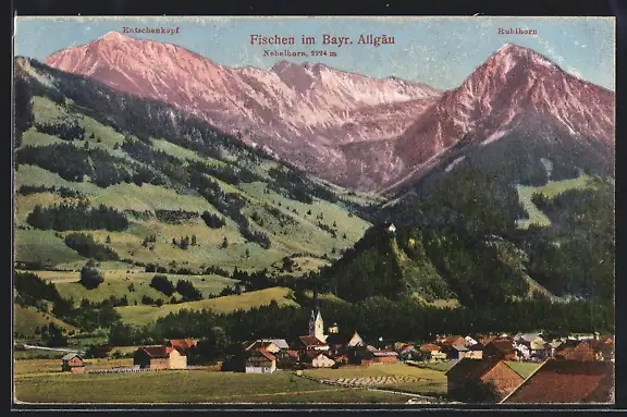 AK Fischen i. bayr. Allgäu, Ortsansicht mit Gebirgskette