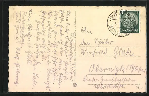alte Ansichtskarte, gelaufen 1935, Stempelspur, guter Zustand