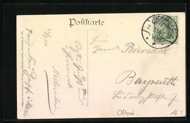 alte Ansichtskarte, gelaufen 1910, guter Zustand