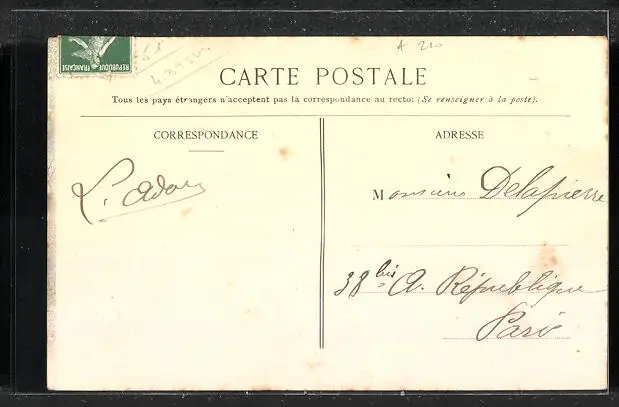 gelaufen 1908, Eckknick links oben, leicht fleckig, sonst guter Zustand