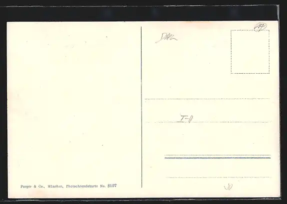 Personenbezogene Daten auf der Rückseite der Karte wurden durch blauen Textmarker unkenntlich gemacht. Die blauen Stellen sind auf die Vorderseite durchgeweicht und wirken sich negativ auf das Postkartenfoto aus