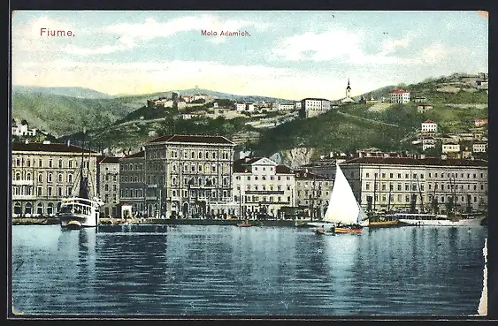 AK Fiume, Molo Adamich, Dampfer, Segelboot