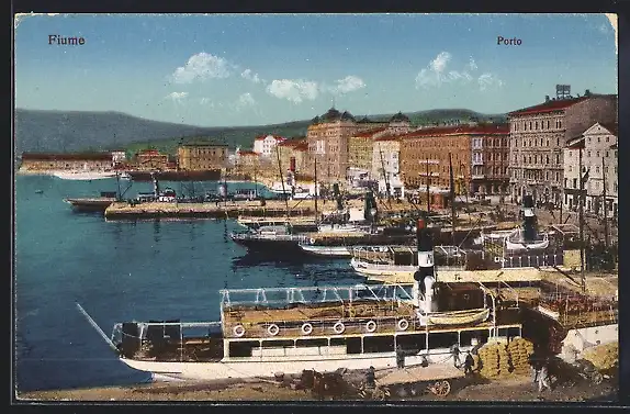 AK Fiume, Porto, Totale vom Hafen