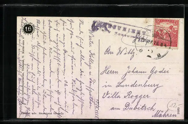 Personenbezogene Daten auf der Rückseite der Karte wurden durch blauen Textmarker unkenntlich gemacht. Die blauen Stellen sind auf die Vorderseite durchgeweicht und wirken sich negativ auf das Postkartenfoto aus