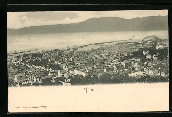 AK Fiume, Teilansicht von einer Anhöhe mit Blick auf das Wasser