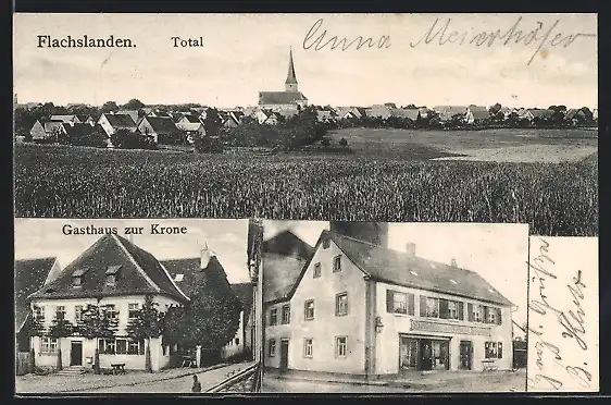 AK Flachslanden, Gasthaus zur Krone, Handlung v. Johann Engerer, Totalansicht