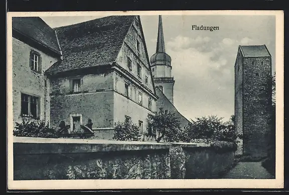 AK Fladungen, Ortsansicht mit altem Wehrturm