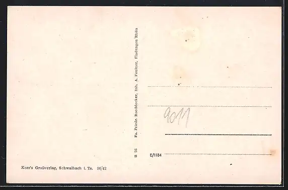 Personenbezogene Daten auf der Rückseite der Karte wurden durch blauen Textmarker unkenntlich gemacht. Die blauen Stellen sind auf die Vorderseite durchgeweicht und wirken sich negativ auf das Postkartenfoto aus