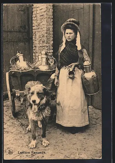 AK Flämische Milchhändlerin mit Hunde-Gespann