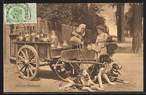 AK Flämisches Hundegespann transportiert Milchkannen