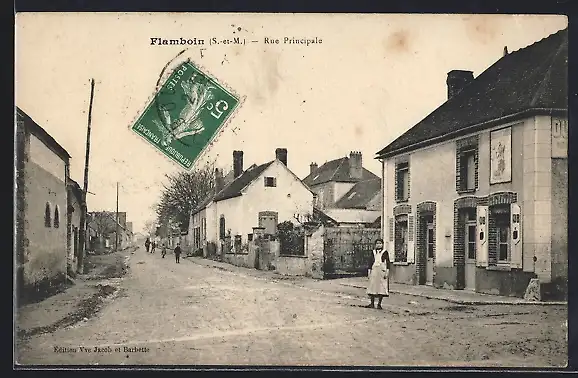 AK Flamboin, Rue Principale avec passants et bâtiments anciens