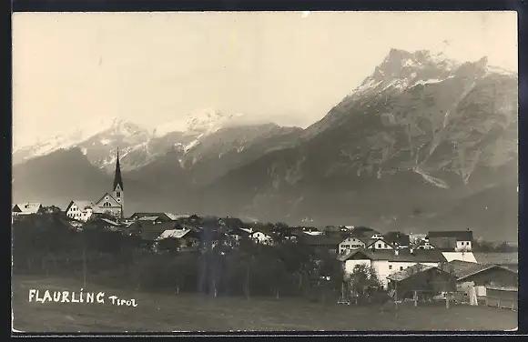 AK Flaurling /Tirol, Ortsansicht mit Bergpanorama
