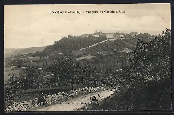AK Flavigny, Côte-d`Or, Vue prise du Chemin d`Alise