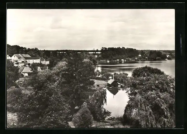 AK Flecken-Zechlin, Ort und See aus der Vogelschau
