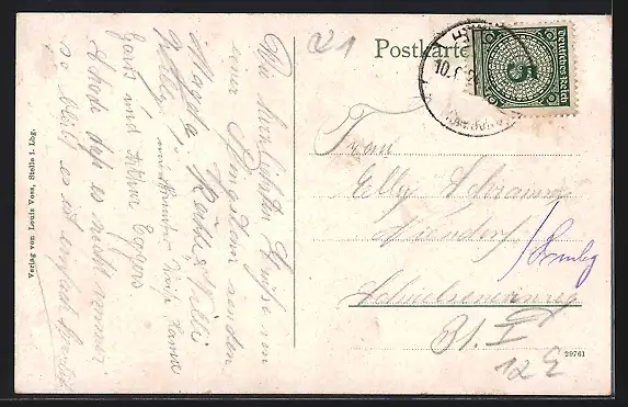 alte Ansichtskarte, gelaufen, Briefmarke entfernt, guter Zustand