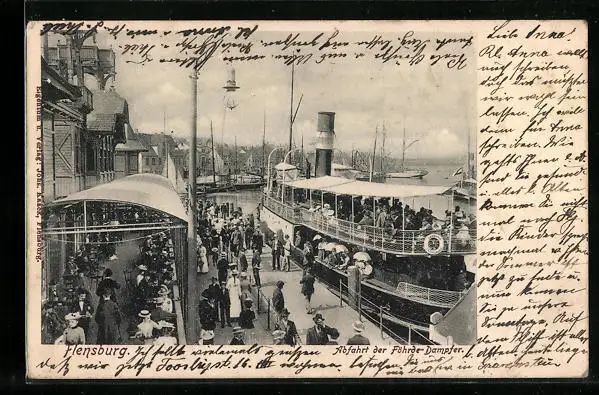 AK Flensburg, Abfahrt der Föhrde-Dampfer