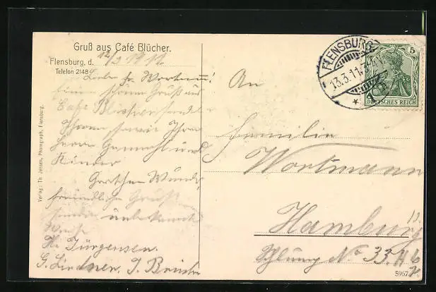 AK Flensburg, Cafe Blücher, Innenansicht mit Theke
