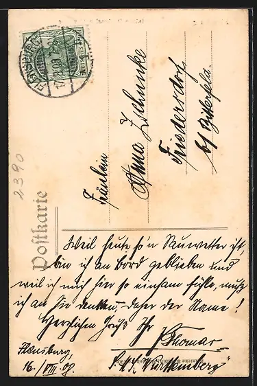 alte Ansichtskarte, gelaufen 1908, guter Zustand
