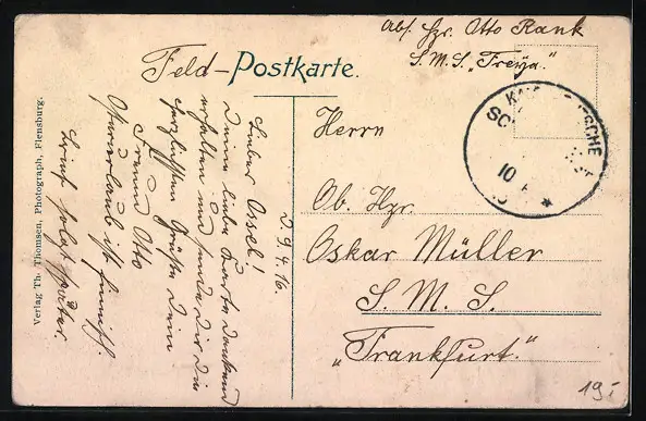 alte Ansichtskarte, gelaufen 1916, Eckknicke li. oben u. re., Stempelspur, guter Zustand