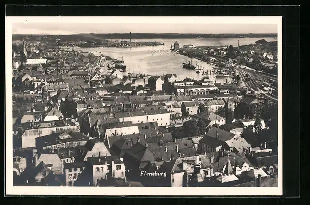 AK Flensburg, Ortsansicht aus der Vogelschau