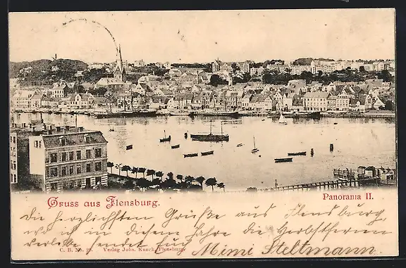 AK Flensburg, Panorama mit Booten
