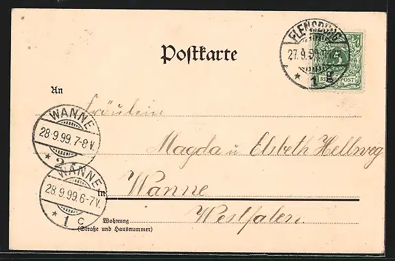 alte Ansichtskarte, gelaufen 1899, guter Zustand