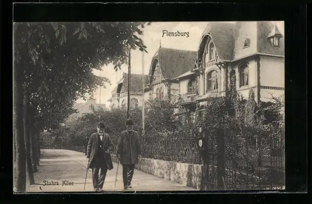 AK Flensburg, Spaziergänger in der Stuhrs Allee