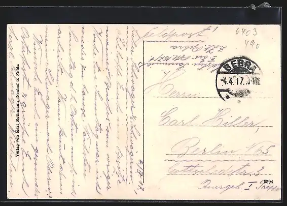 alte Ansichtskarte, gelaufen 1917, Eckknick li. unten, guter Zustand