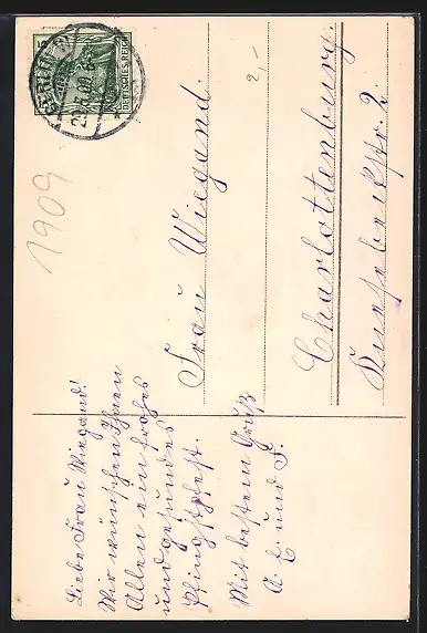 alte Ansichtskarte, gelaufen 1909, guter Zustand