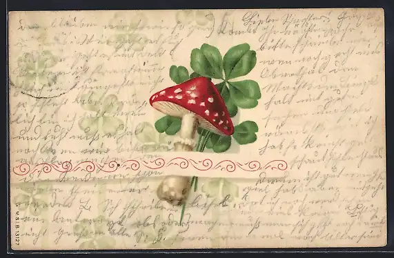 AK Fliegenpilz mit Kleeblättern