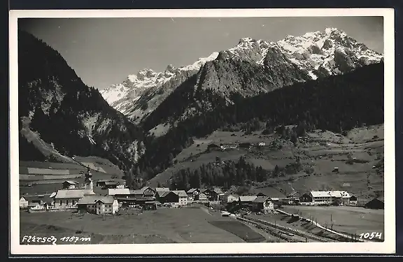 AK Flirsch, Ortsansicht mit Gebirgspanorama