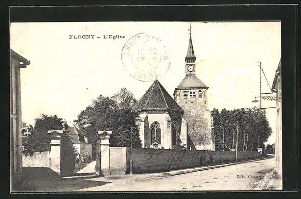AK Flogny, L`Eglise, auf der Strasse vor der Kirche