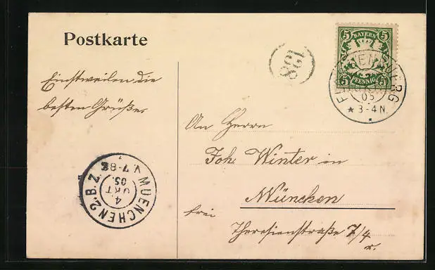 alte Ansichtskarte, gelaufen 1905, guter Zustand