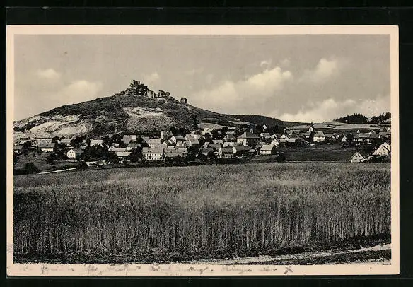 AK Flossenbürg /Oberpf., Ortsansicht mit Burgruine