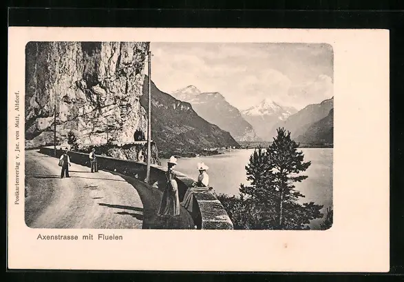 AK Flüelen, Axenstrasse mit Ortsansicht