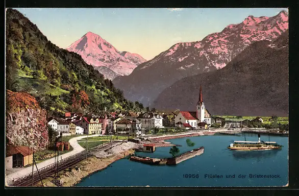 AK Flüelen, Blick zum Ort mit Bristenstock