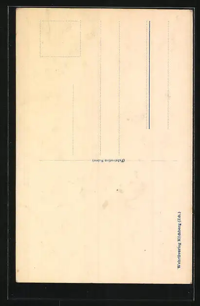 Personenbezogene Daten auf der Rückseite der Karte wurden durch blauen Textmarker unkenntlich gemacht. Die blauen Stellen sind auf die Vorderseite durchgeweicht und wirken sich negativ auf das Postkartenfoto aus