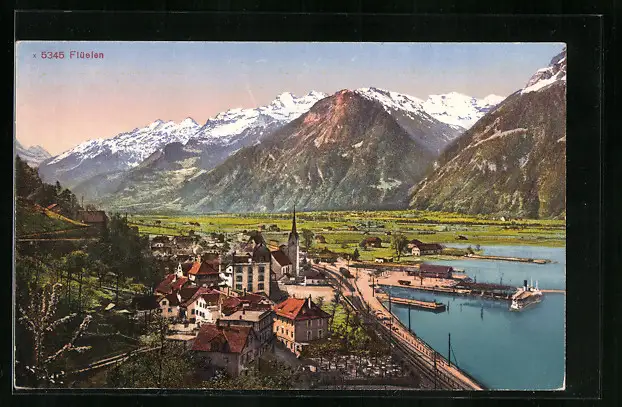 AK Flüelen, Ortsansicht aus der Vogelschau