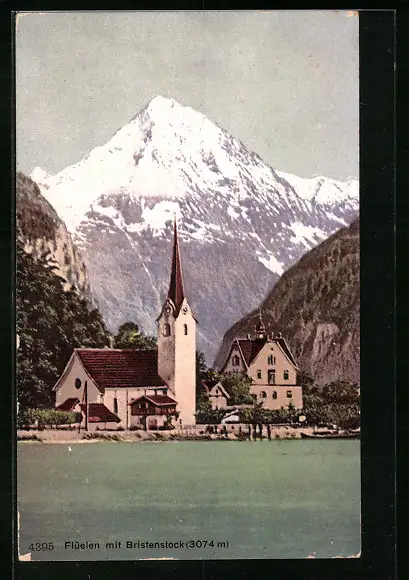 AK Flüelen, Teilansicht mit Kirche und Bristenstock