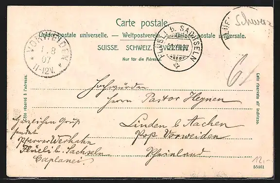 alte Ansichtskarte, gelaufen 1907, Briefmarke entfernt, guter Zustand