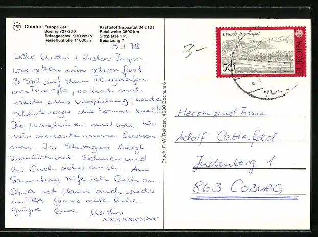 alte Ansichtskarte, gelaufen 1978, guter Zustand