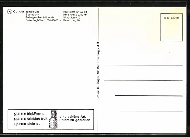 AK Flugzeug Boeing 747 Jumbo-Jet von Condor im Flug