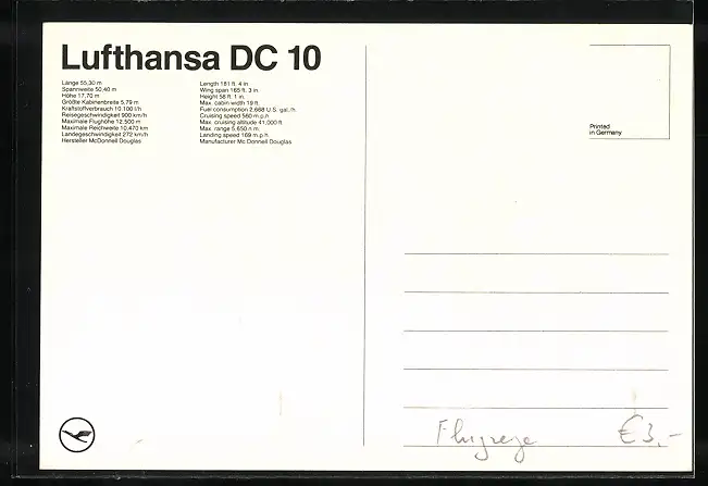 AK Flugzeug DC 10 d. Lufthansa im Flug