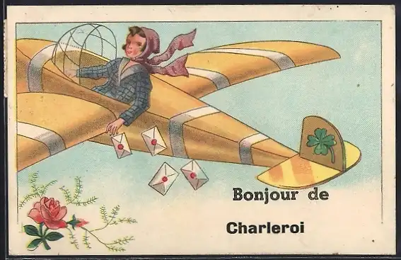 AK Flugzeug, Dame wirft Briefe aus dem Cockpit
