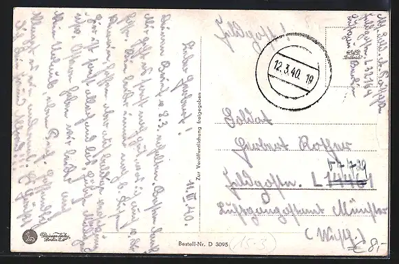 alte Ansichtskarte, gelaufen 1940, Stempelspur, guter Zustand