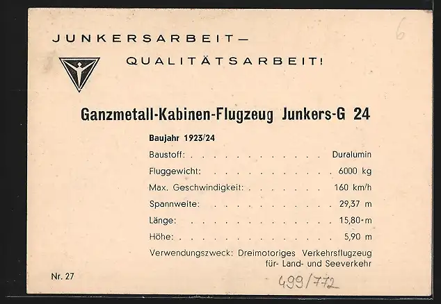 AK Flugzeug Junkers-G 24