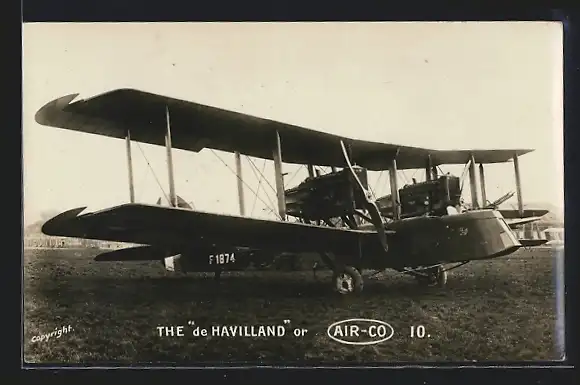 AK Flugzeug de Havilland F 1874 auf dem Landeplatz